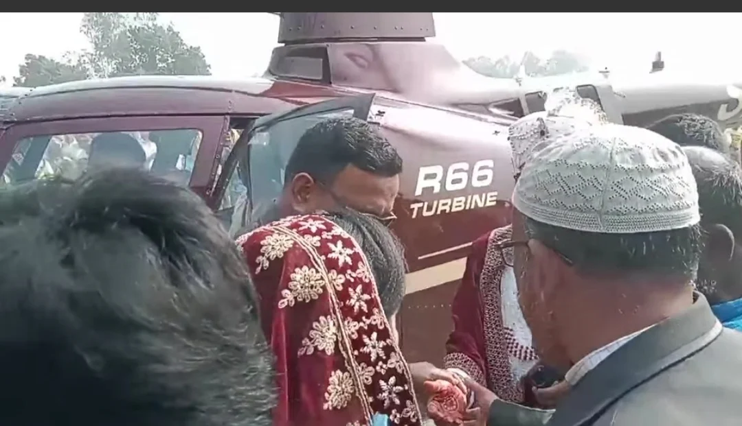 ছোটবেলা থেকেই প্রবল ইচ্ছা বউ নিয়ে গ্রামে আসবেন হেলিকপ্টারে উড়ে। সেই ইচ্ছার বাস্তব প্রতিফলন ঘটালেন সিলেটের নাজিমউদ্দিন চৌধুরী। রংপুরের বদরগঞ্জ থেকে হেলিকপ্টারে করে বউ নিয়ে গেলেন বর নাজিমউদ্দিন চৌধুরী।