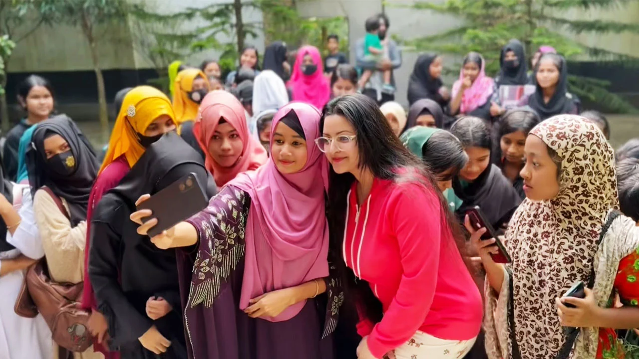 এরপরই তাদেরকে বিকেলে আসার কথা বলেন নায়িকা। তার কথায় বিকেলে আবারও চলে আসে তারা। তবে এবার শুধু শিক্ষার্থীরাই ছিলেন না, সঙ্গে ছিলেন এলাকার আরও কিছু সাধারণ উৎসুক মানুষেরাও।